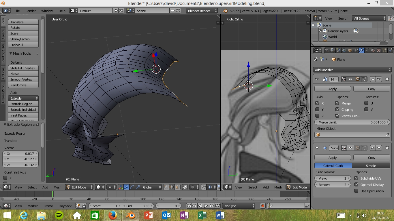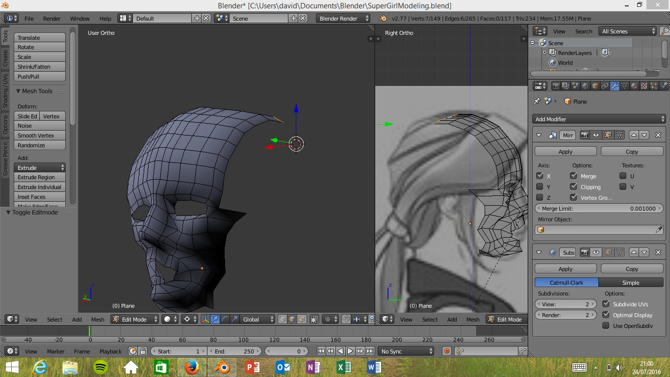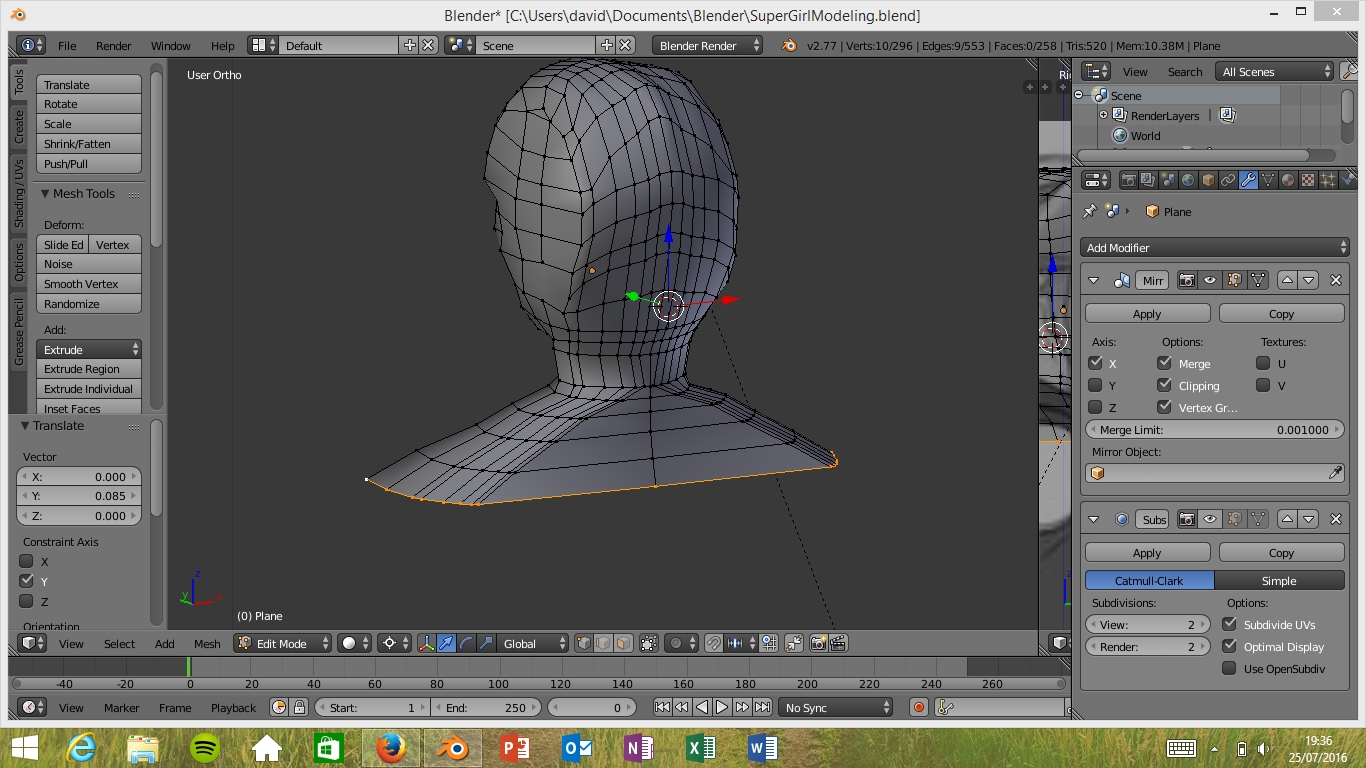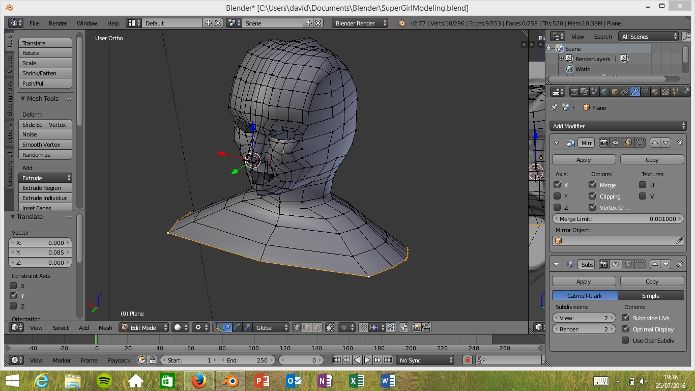 Si esa és la técnica que usé la primera vez, empezé por un plano situado entre la nariz y los labios , lo dividí y añadí el modificador espejo son problemas, aunque luego me salío un orco