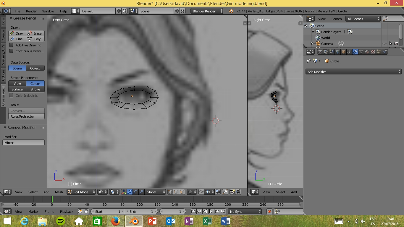 Por otro lado , comenzé siguiendo otro tutorial que empezaba modelando desde los ojos, y otro problema!