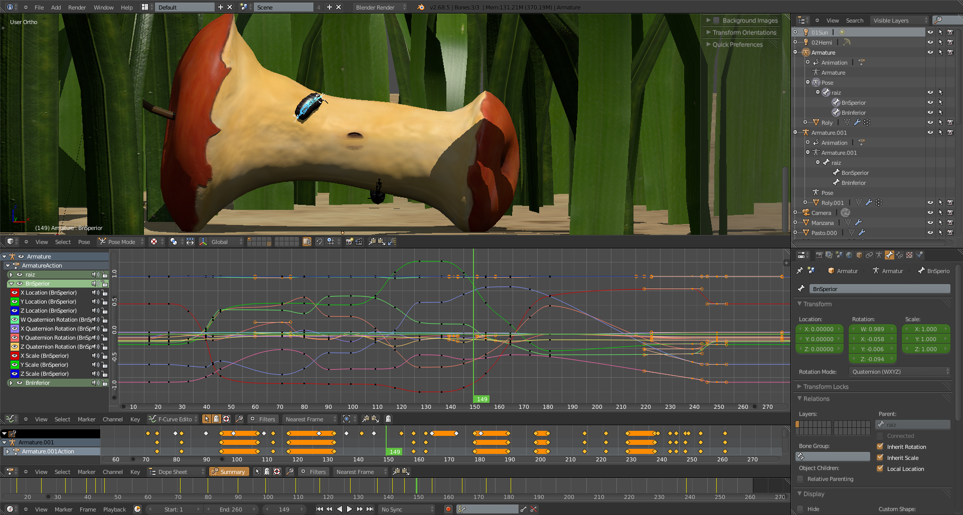 Trabajando en la animación, los detalles finales. Y a poner a render. Esperando que todo salga bien. :roll:
