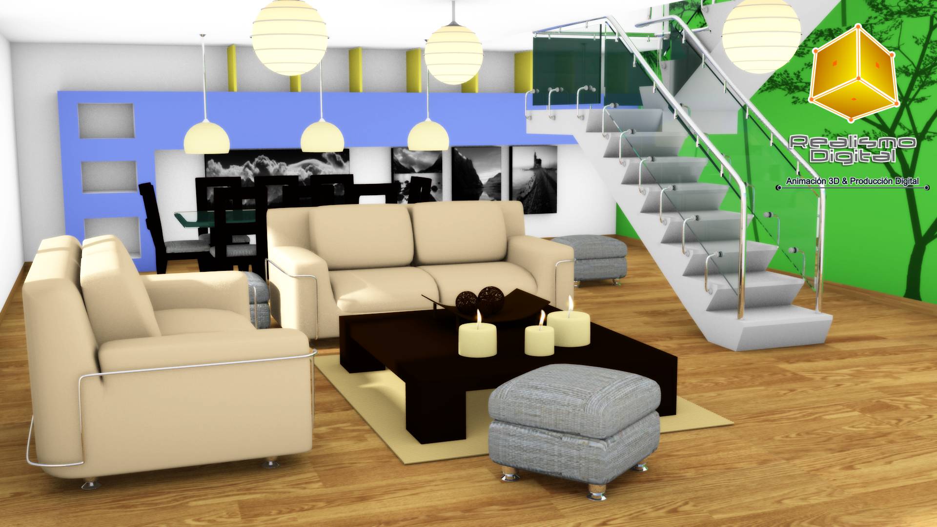 La pared verde rompe la escena y las amarillas también, en cuestiones de render se ve bien, quizás trabajar un poco más el material de la mesa.
