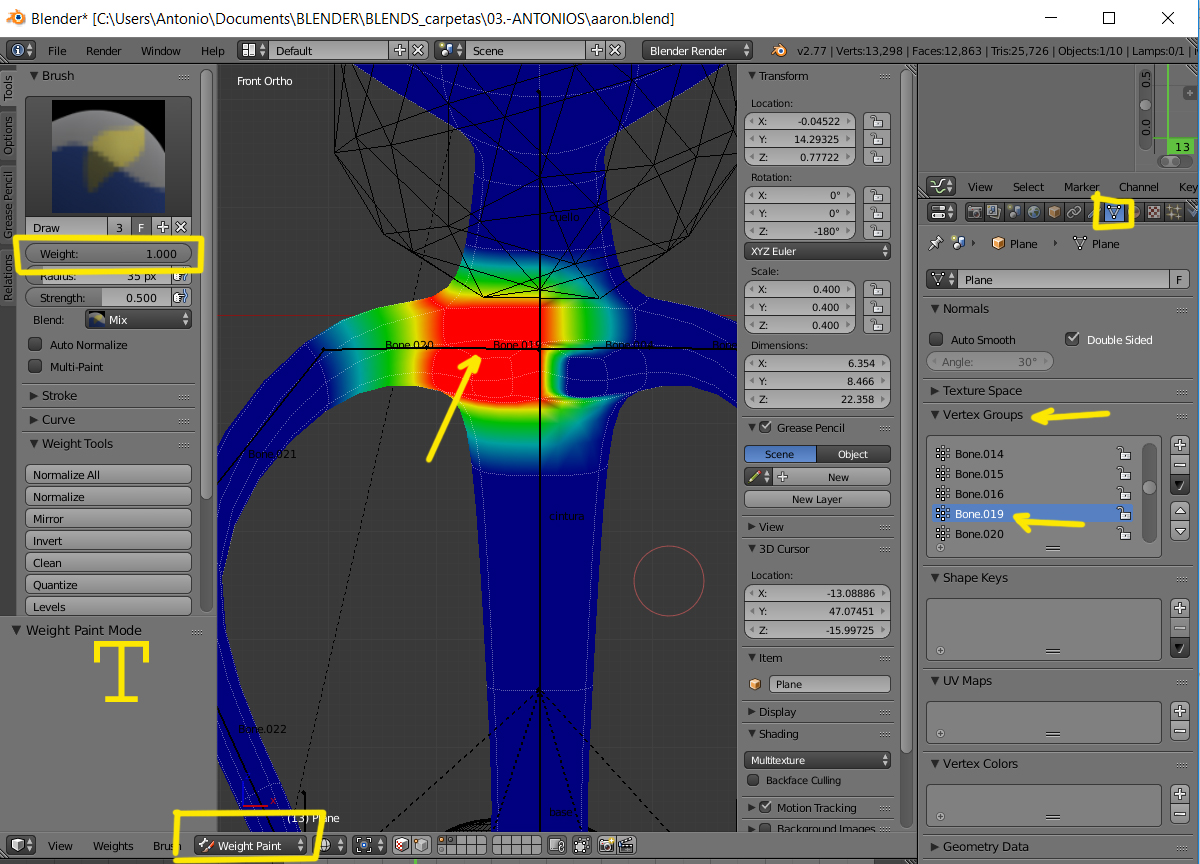 Y si te refieres a hacerlo todo manualmente, sería ir a ese panel de los VERTEX GROUP y escribir a mano el nombre del Hueso, luego seleccionar los vértices que afectan a ese hueso y presionar el botón ASSIGN (asignar). Y repetir con todos los huesos.