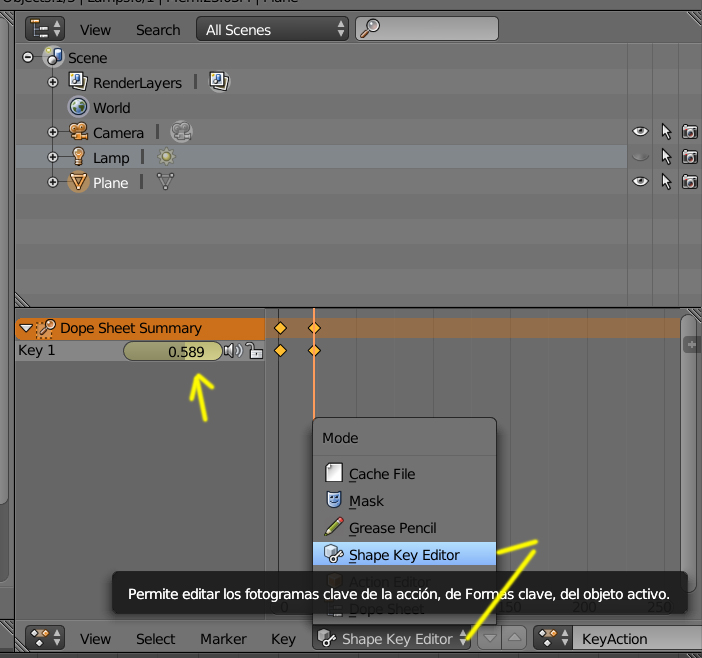 El Shape Key tiene en la ventana de Dope Sheet una opción de Shape Keys