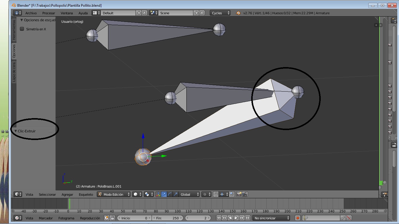 Vale... es que al hacer eso siempre te lo extrudirá así... si es un hueso solo; cuando hay mas, no te lo haría (no estoy muy seguro de todas formas..