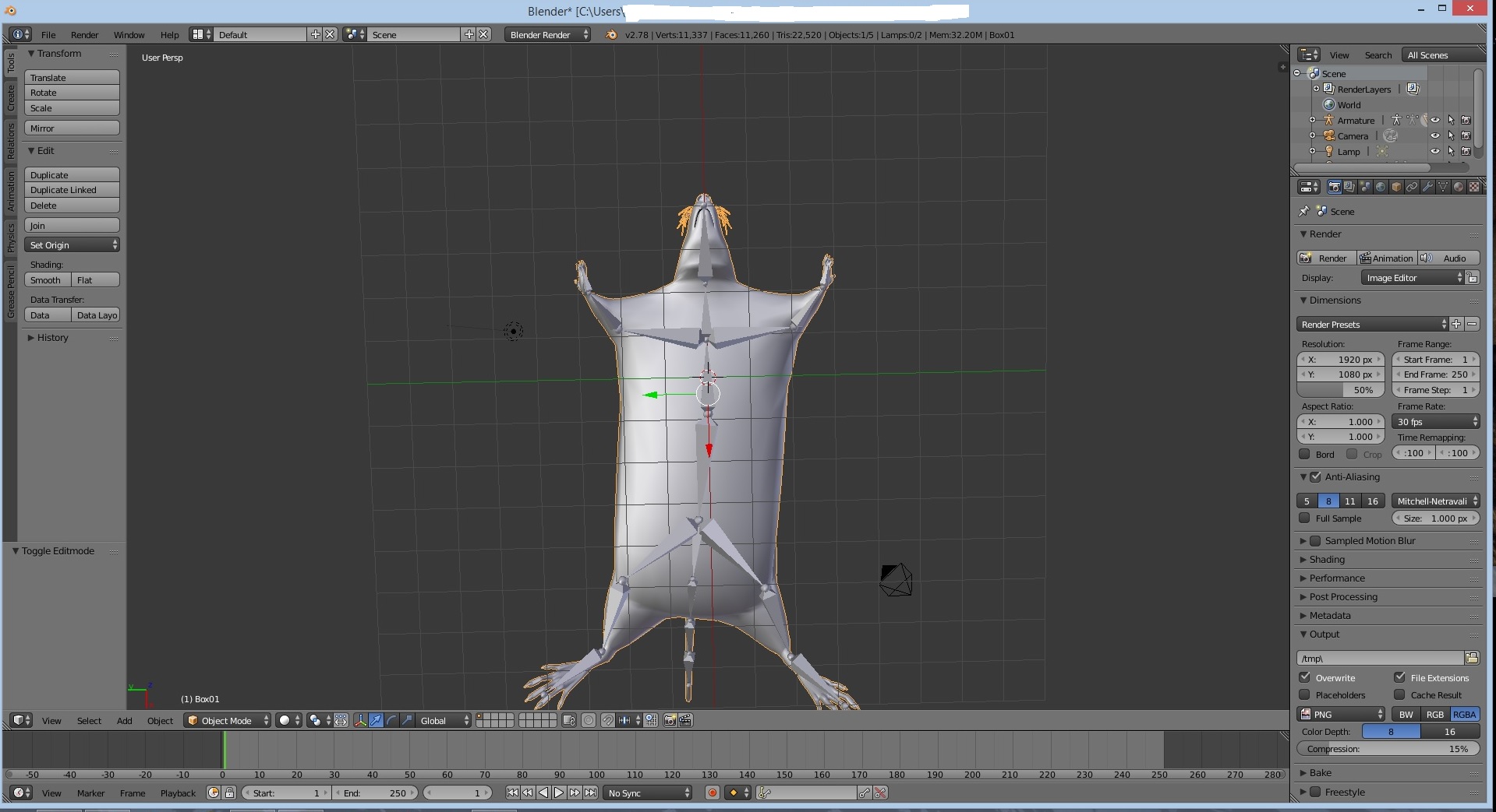 El problema, y es lo que os quiero preguntar, es que le he hecho un rig al modelo, y en object mode está en la posición correcta, pero para realizar el corte de las caras de la malla debe estar en edit mode. Al seleccionar este modo, el modelo vuelve a su posición natural.