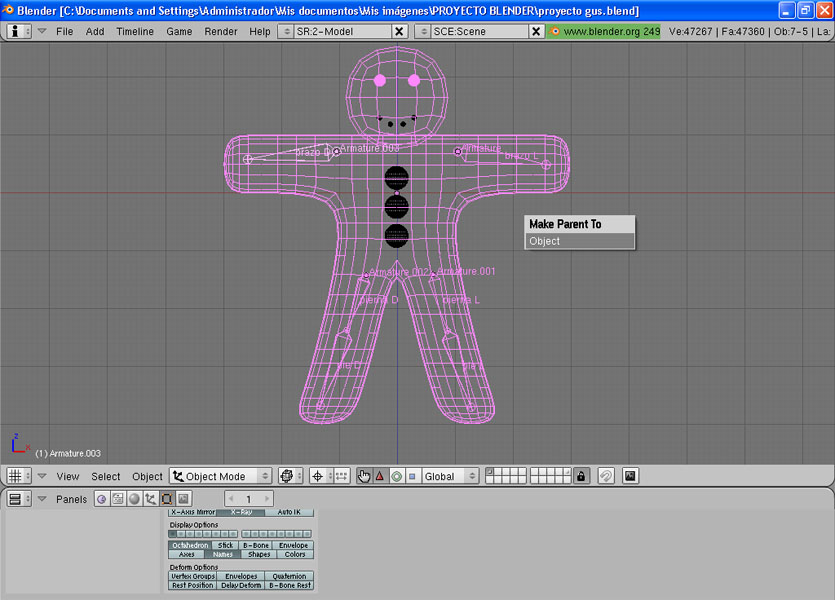 seleccionando a Gus y el esqueleto pulso CTRL-P y no me sale la opcion Use Armature.