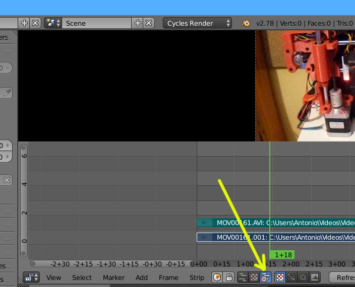 Si lo que quieres es ver en el Video Sequence Editor, el vídeo con el que estas trabajando, solo tienes que pinchar en botón que hay debajo (subo imagen).