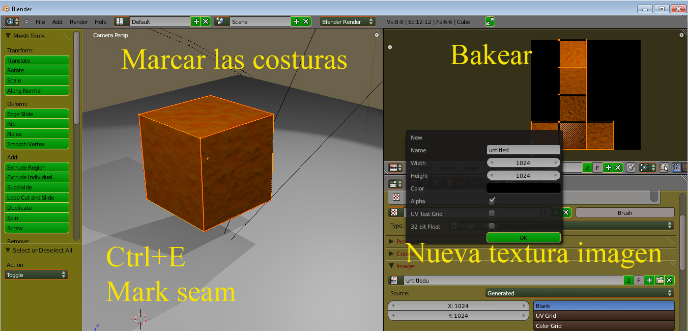 En la 5ª es como se hace el BAKE. En este caso he seleccionado textura, pero se pueden hacer bakes de las normales, desplazamiento, etc.