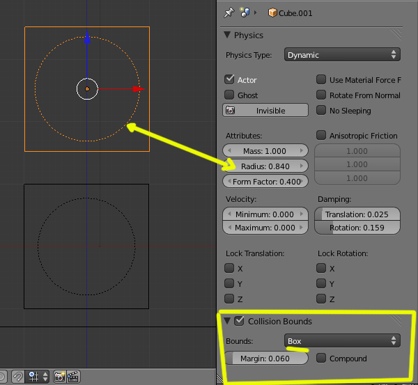Lo que he hecho ha sido ampliar la escala de todo el sistema, que lo tenia por recomendación de un tutorial a 0,05, junto con cambiar el parámetro de físicas de la estructura al apartado Dynamic. (Lo del radio lo he mirado y no se salia)