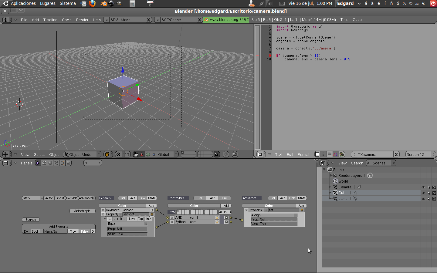 Keyboard(space) cube(python:conf)(script:camera{el script arriba})