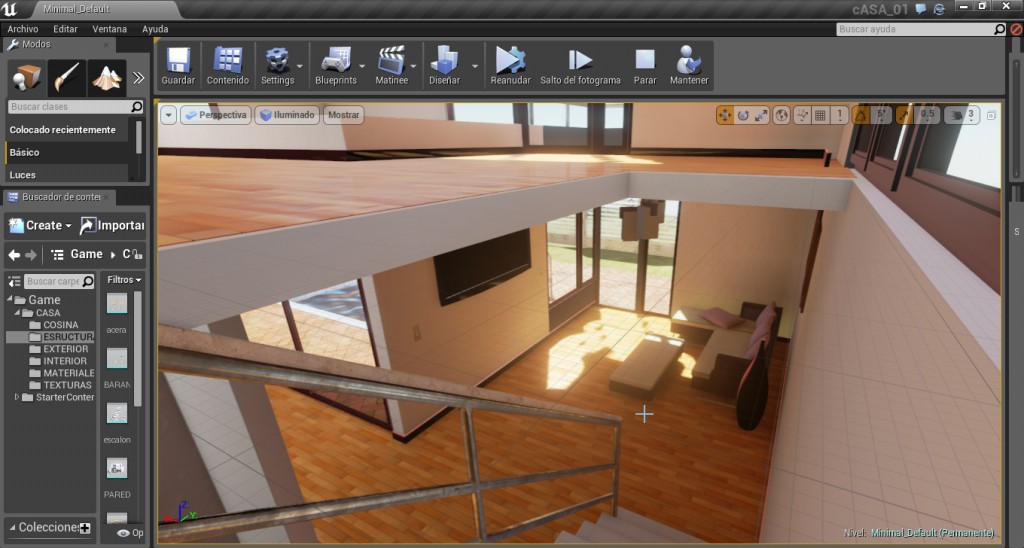 Excelente trabajo warcos, yo también estoy interesado en hacer recorridos virtuales, aunque estoy tratando de iniciarme en el Blender Game Engine creo que le daré una probada al Unreal, había visto un vídeo en donde podías cambiar los colores de algunos objetos y eso me encantó. Si lograra dominar eso creo que sería la primer persona en donde vivo en hacer algo parecido.