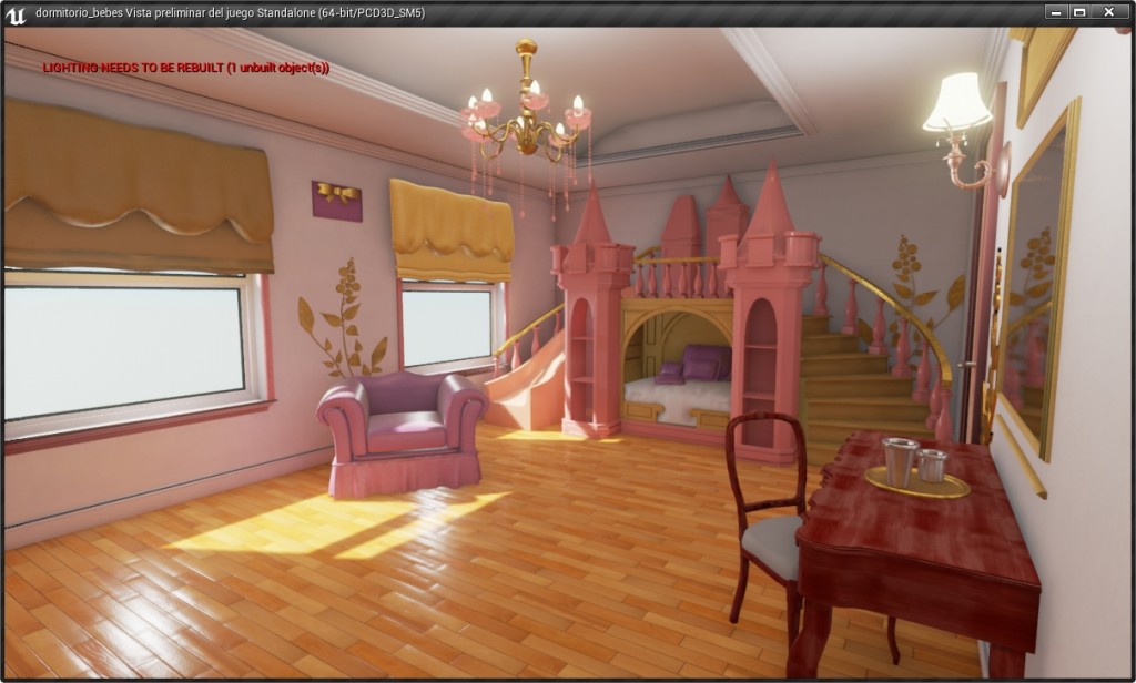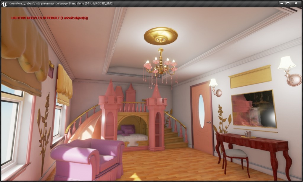 aqui imagenes de la segunda prueba.. es un cuarto de niños que estuve modelando en Blender y lo llevé a unreal
