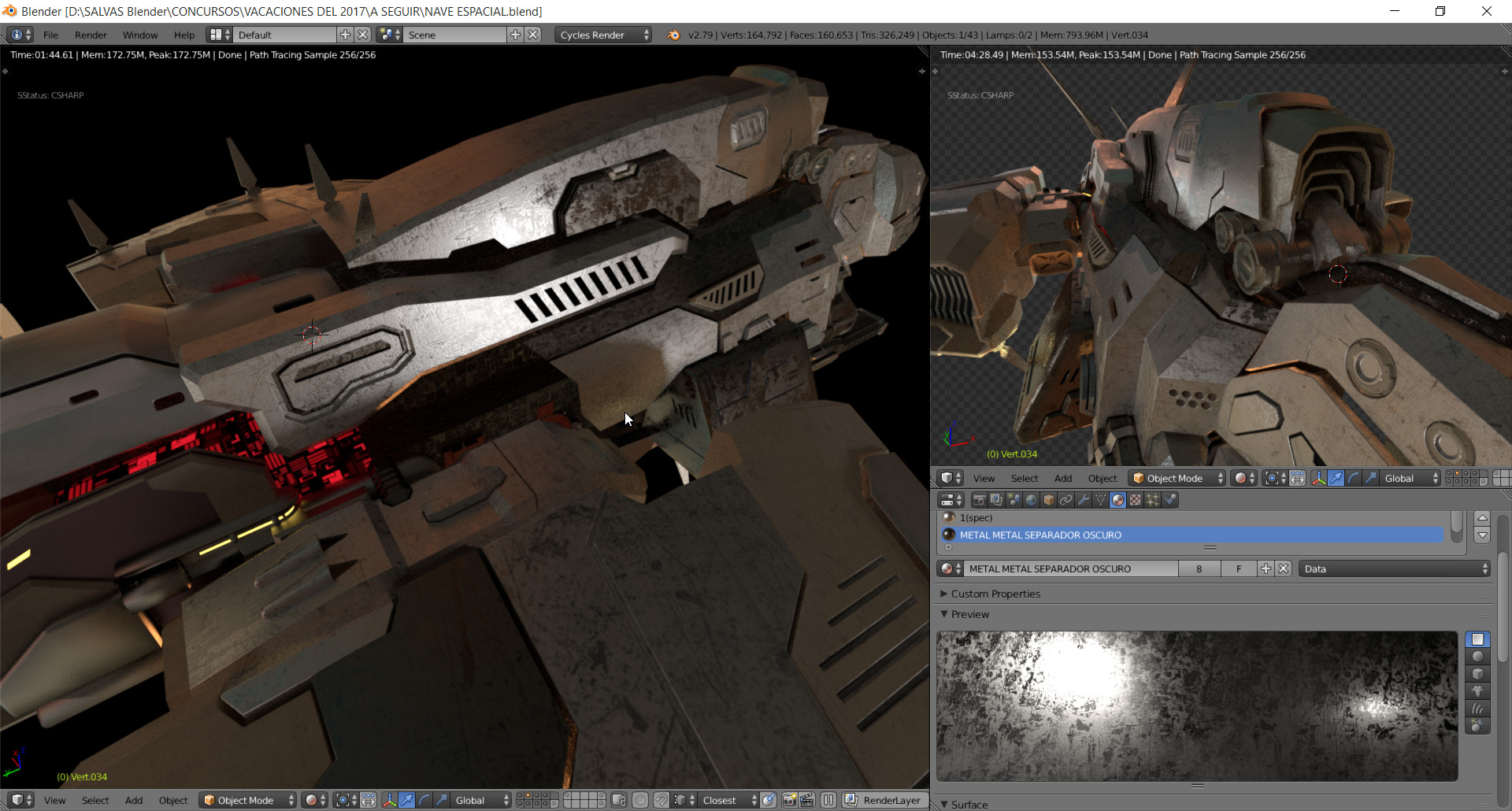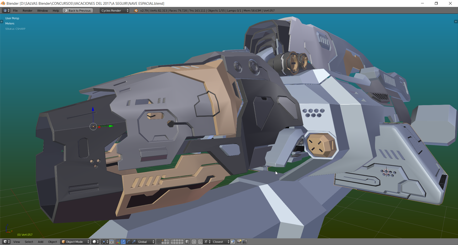 Hola a todos hace ya un tiempo para los amigos de la revista Blenderianos hice un render de una Nave espacial y queria compartirles el Render final y algunas imagenes que muestran el progreso..