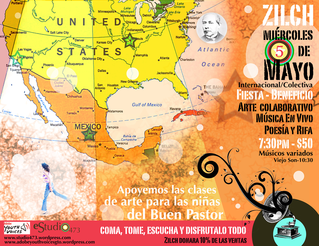 La Fiesta Beneficio es en el Bar Zilch, abra mucha música en vivo, una rifa, y 10% de las ventas van a apoyar el programa de Adobe Youth Voices: http://adobeyouthvoicesgto.wordpress.com/