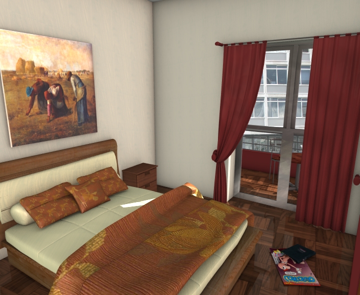 esta genial, lo unico y creo que ya lo dijeron es el sillon, de ahi en fuera te recomiendo un poco de raymirror en las ventanas, eso te le va a dar un toque de realismo y en el render de la recamara esta muy bueno lo unico es que deverias de alejar un poco la camara y luego recortar la foto, esto para que no te genere \"errores\" como el que se ve en el cuadro, parece que estubiera chueco.