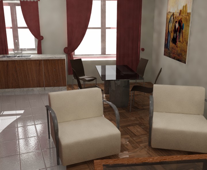 Creo que con un poco de bump y texturas en los sillones podria mejorar la escena