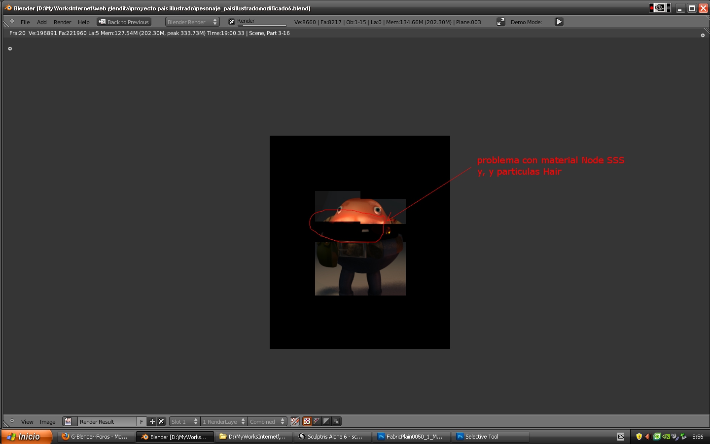 Problema con SSS y particles hair