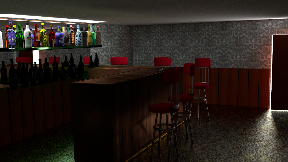 PD: me gusta la escena, no se porque pero veo en el suelo ese efecto de limpio/sucio y me gusta, y la iluminación para mi esta bien (en unas partes) tiene la suficiente luz para un bar (normalmente son mas oscuros que una habitación normal)
