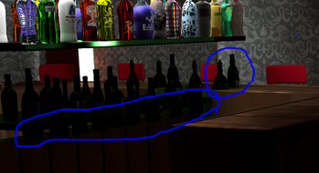 Hola, gracias por tus observaciones. Según yo no debería verse así ya que viendo la escena en wireframe las botellas no están a la mitad de la mesa, y las otras botellas si descansan en una repisa, solo que por la falta de luz da esa sensación. Voy a revisar bien, pues puede ser que haya errores, aún falta trabajar esta escena.