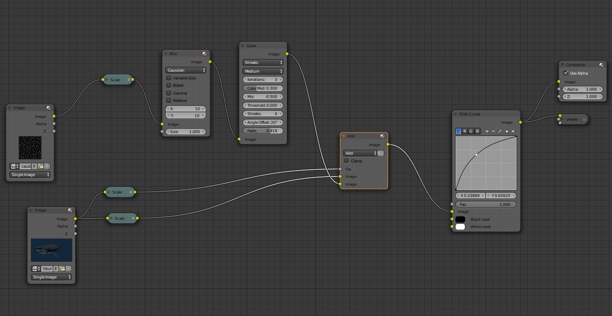 que chulada soliman, la verdad es que no controlo mucho sobre el editor de nodos..soliman escribió:Eso, con el mismo Editor de Nodos de composición, puedes aclararlo y hasta mezclarlo con alguna imagen de causticas...