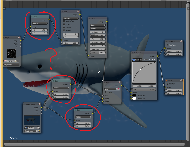 En la imagen que subí yo antes, tiene dos SCALE que en tu caso no hacen falta, pues yo utilicé TU IMAGEN.. y en este caso ya actua el -Renderlayer- (la escena) directamente por lo que se pueden borrar pues ya tiene el tamaño de la escena ¡¡¡¡¡