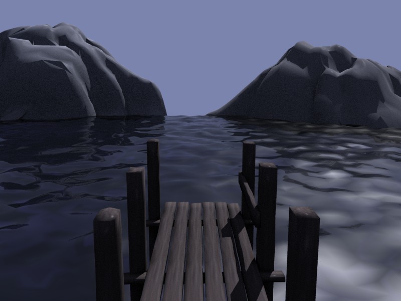 Bueno, ahora estoy tratando de hacer un paisaje con agua y rocas, pero no he podido hacer que se vean las nubes. El render que estoy utilizando es Yafray.