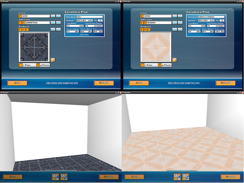 hola amigos, estoy acabando un proyecto en Blender en el GameEngine, es sobre cambiar la ceramica de piso y pared de un a habitacion,baño,cocina,sala,escalera y pasillo de una casa..:O}