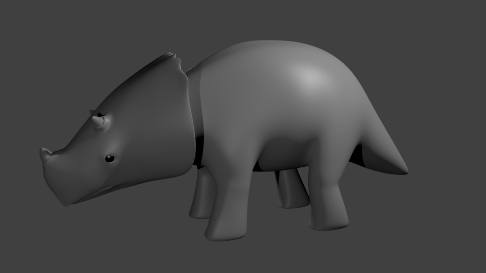 Tengo mucho trabajo y para evitarlo abrí blender, así es como uno termina haciendo las cosas. Pues rayé en mypaint lo que vendría siendo un Triceratops bebé, este pequeño dinosaurio tiene como propósito, en cuanto este terminado, servir para pruebas en el game engine, que lo tengo en el abandono. Así que sin más vamos dándole a este WIP.
