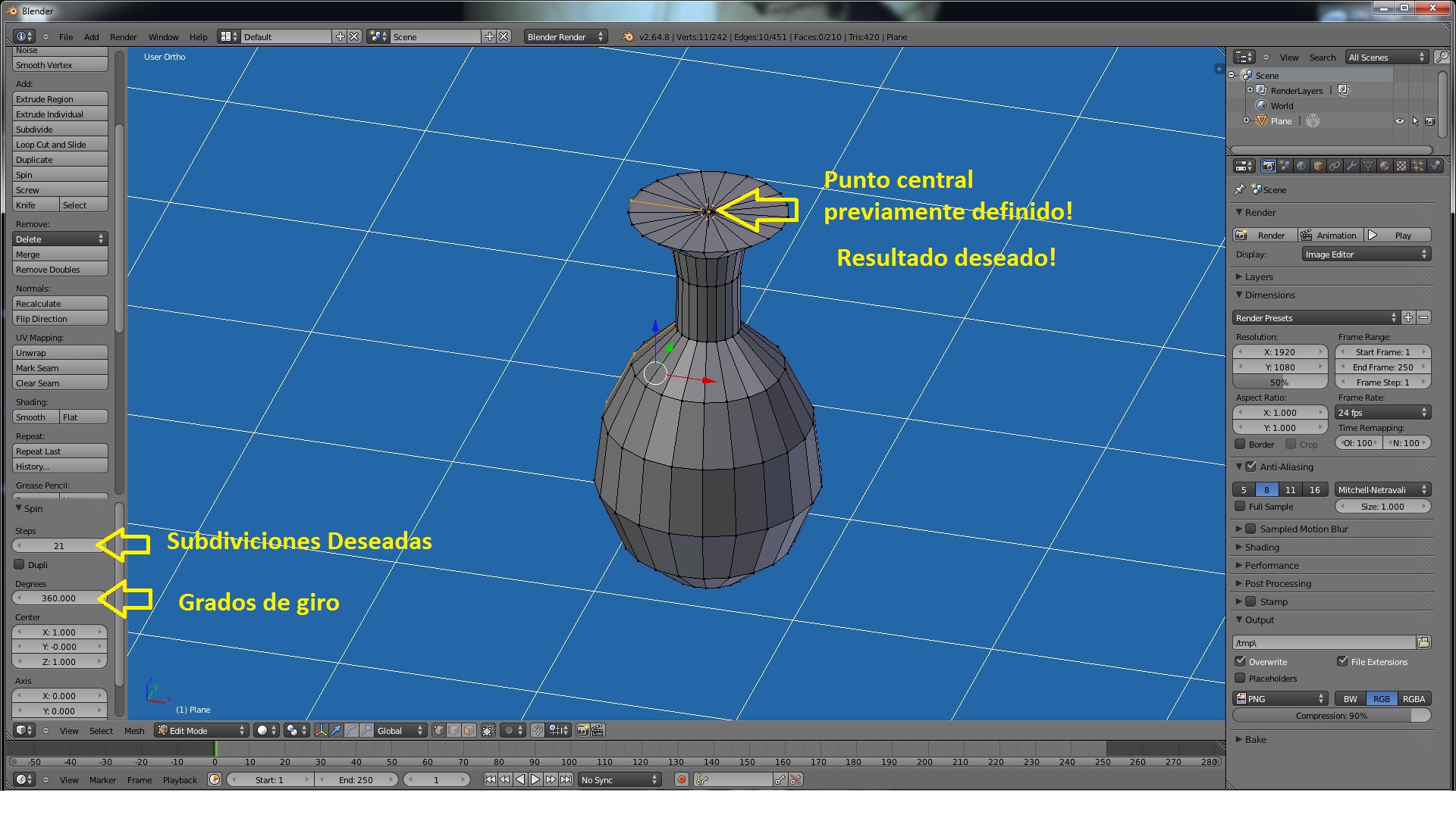 Adjunto una captura de pantalla del caso. al hacer spin a un mesh me deforma el objeto sobre uno de los ejes. Tengo la versión 2.63. con la 2.49 no tuve ningún problema