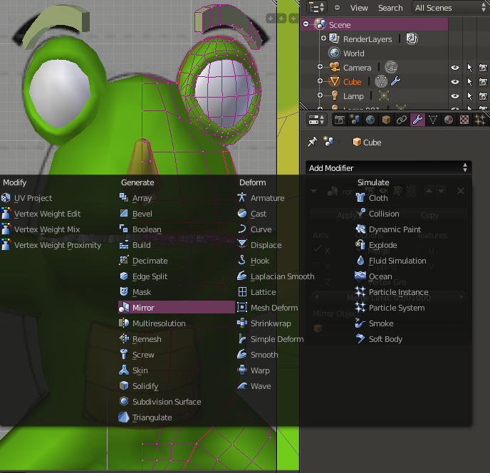 Haciéndote caso, intentaré crear otro personaje pero esta vez con el modificador mirror. Lo que ocurre es que claro los dos lados salen completamente simétricos y no sé cómo detener el modificador en el momento que quiera crear alguna diferencia entre los distintos lados de la cara.