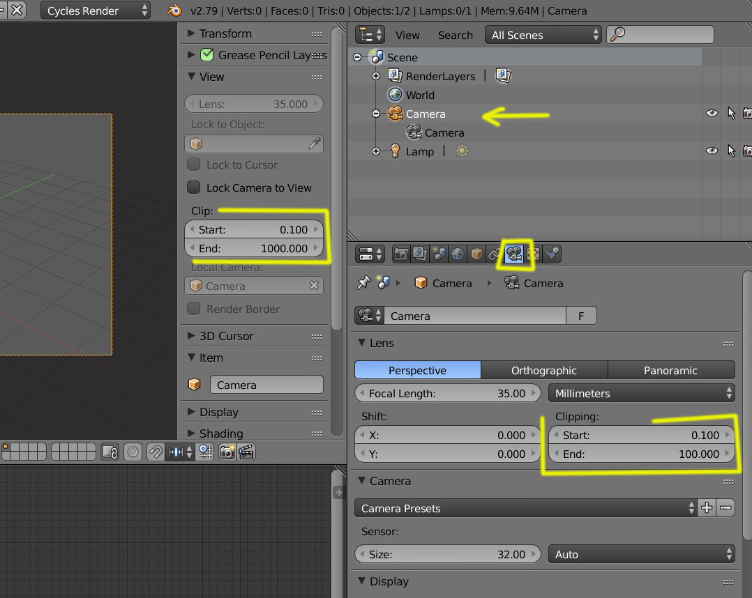 Gracias ! Efectivamente era ese problema, ahora modifique los valores y sale todo el terreno !octagesimal escribió:Puede tratarse del clipping de tu cámara, es decir, la distancia en unidades blender que la cámara alcanza a "ver". Prueba seleccionando tu cámara y en el panel de propiedades de la cámara aumenta la distancia end del cplipping.